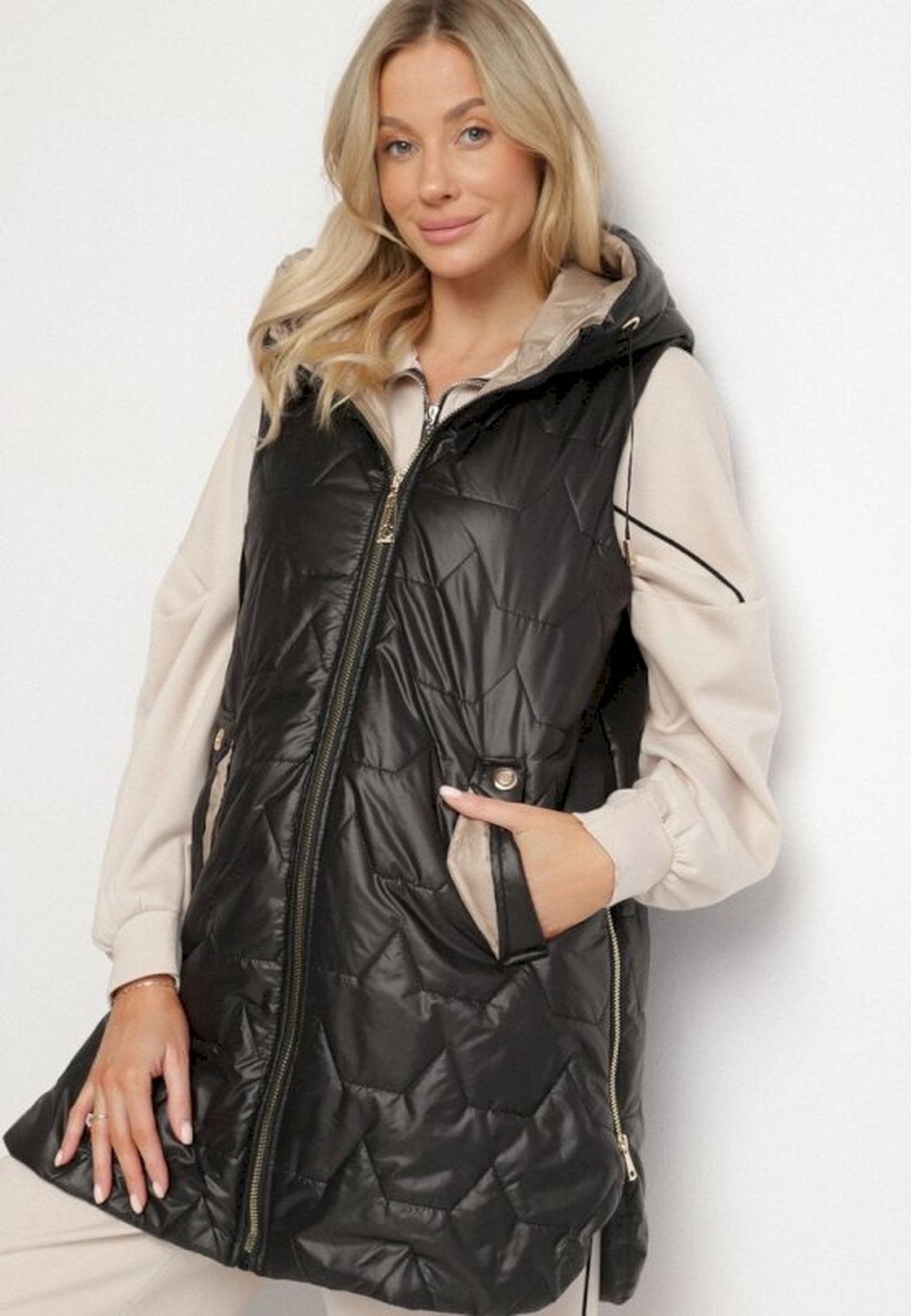 Kamizelka pikowana z kapturem