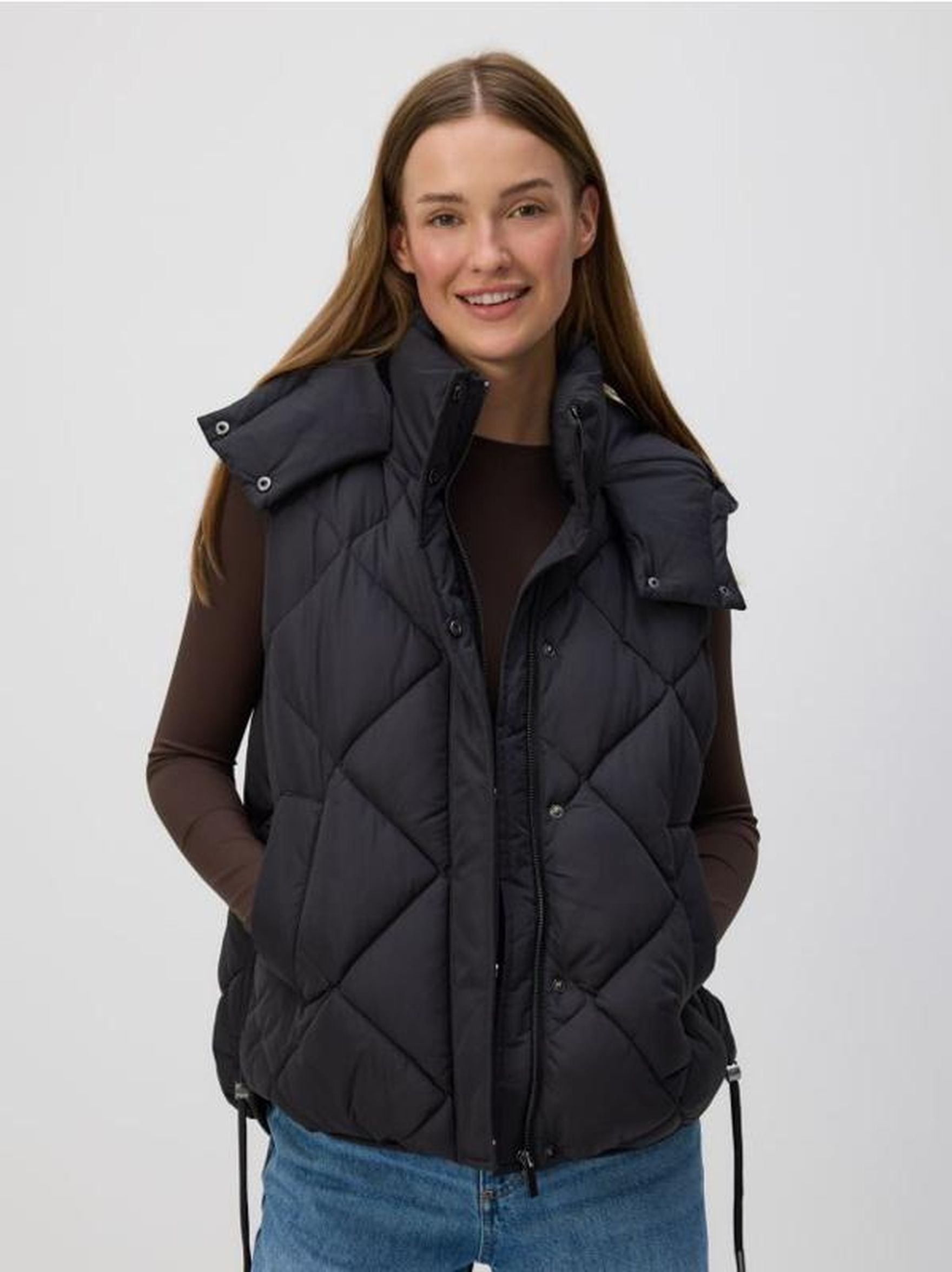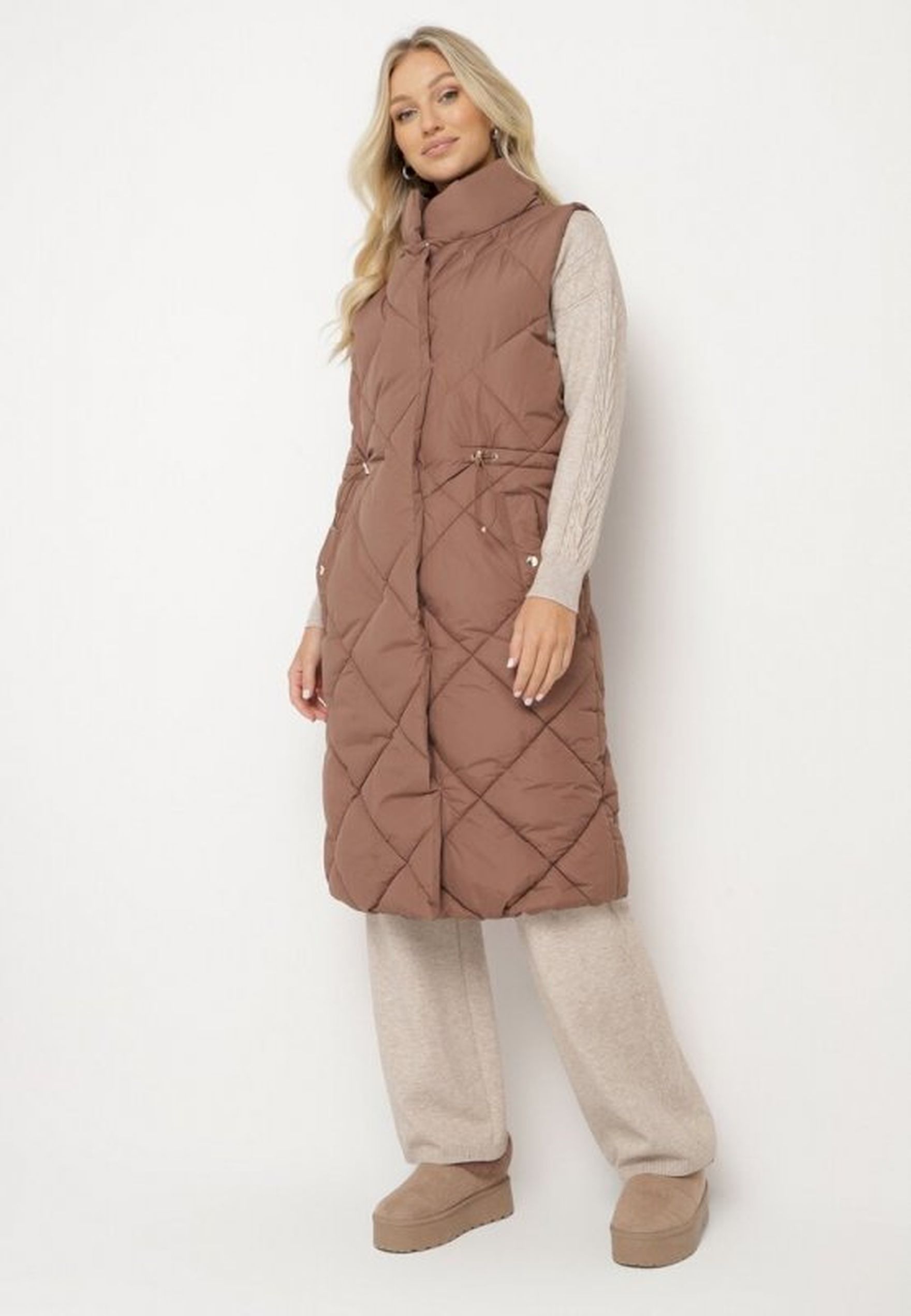 Kiedy zimowa aura za oknem wyjątkowo chcemy mieć poczucie ciepła i przytulności oraz funkcjonalności zarazem. Zimową porą najwięcej ciepła ucieka nam przez głowę, aby zatem chronić odporność warto mieć poczucie, że ta część naszego ciała jest bezpieczna. W takim przypadku przyjdzie nam z pomocą kamizelka pikowana z kapturem. Zapewne to typowo sportowy design. Jednak zarówno ta puchowa pikowana kamizelka z kapturem sięgająca bioder z ukośnymi przeszyciami o taliowanym fasonie, jak i ta długości maxi o asymetrycznych wzorach sprawią, że poczujemy się przytulnie, modnie i bardzo ciepło.