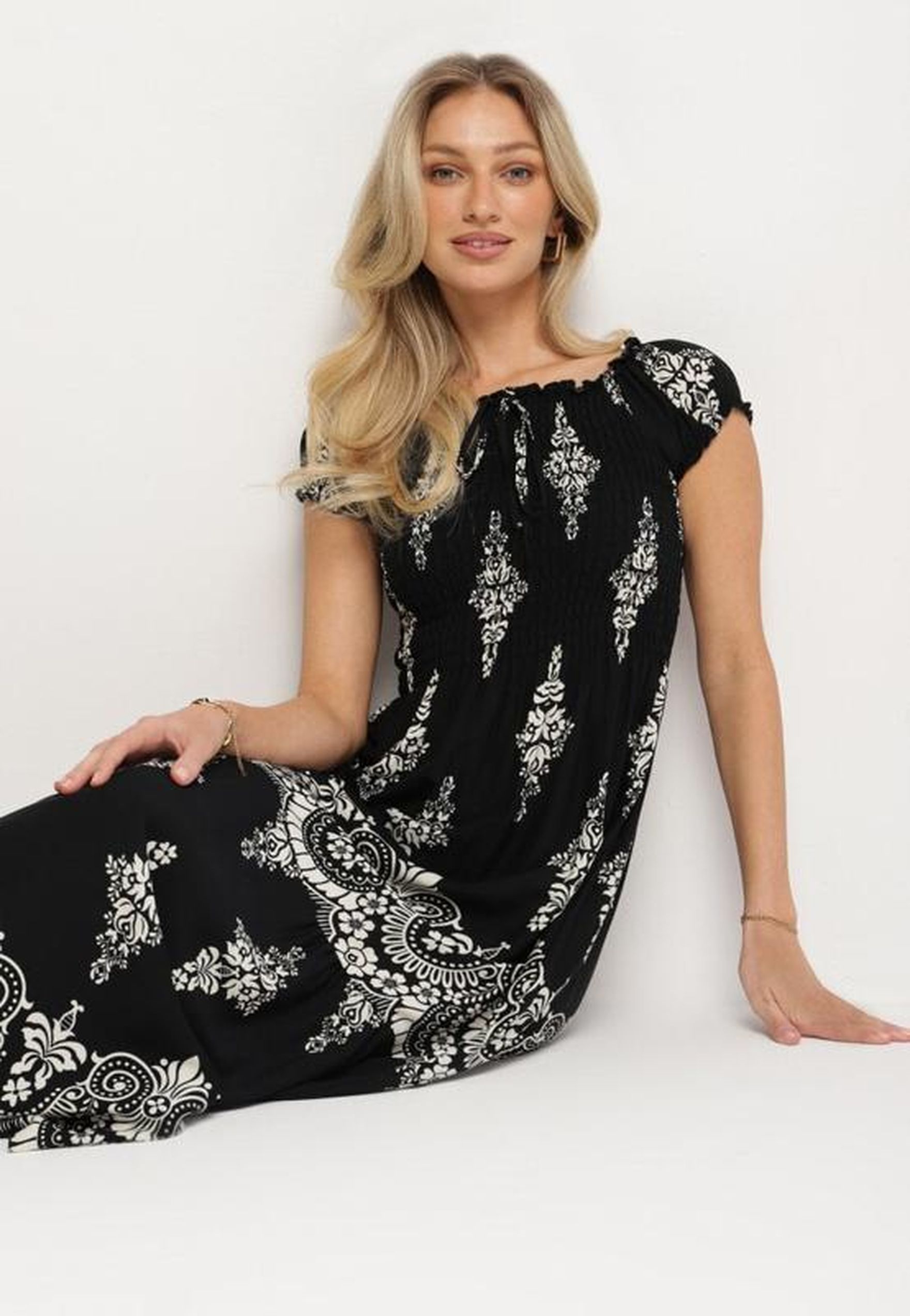 - Złote dodatki – biżuteria wykonana z pozłacanego materiału lub torebka na złotym łańcuszku przełamią czerń, nadając jej jeszcze większej klasy i wyszukania;