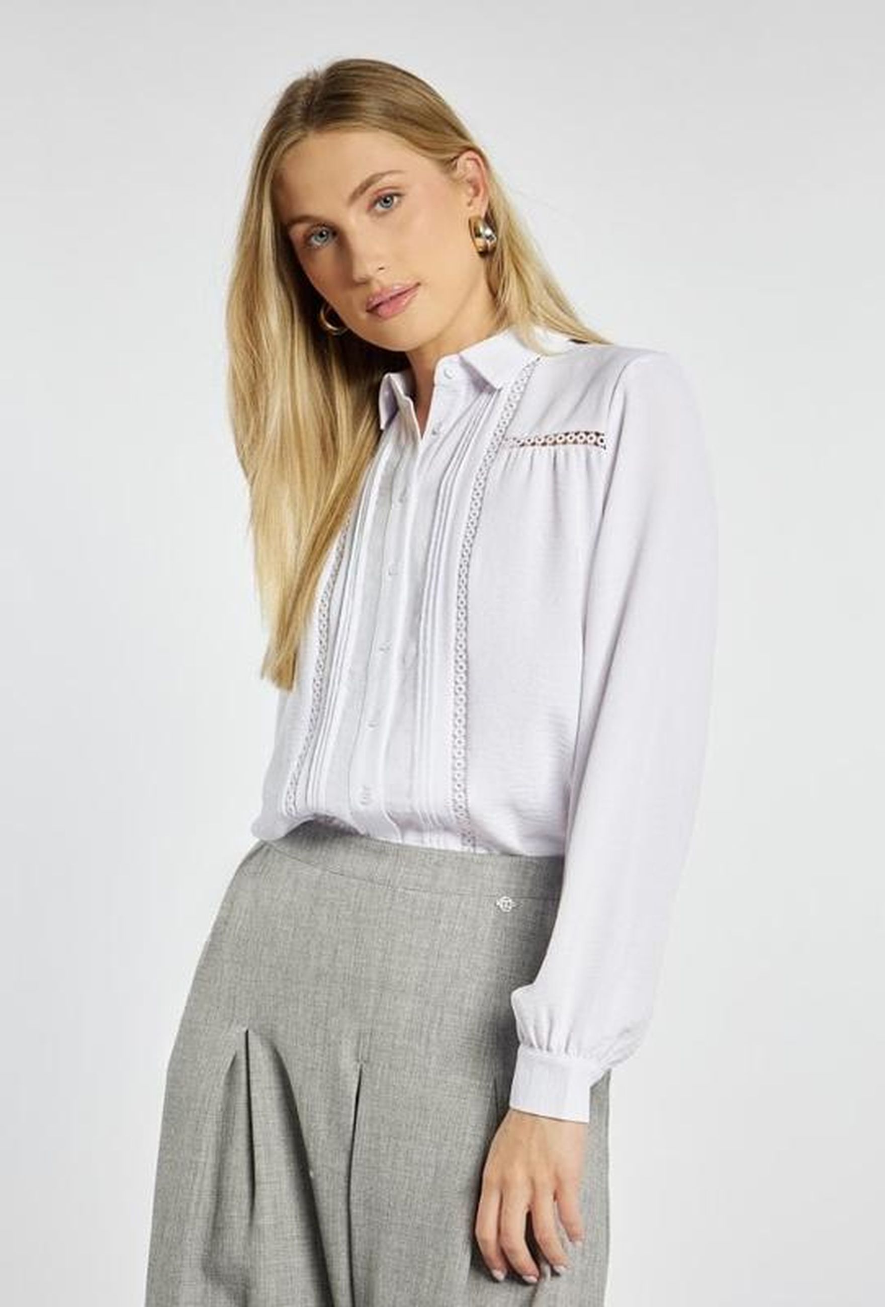 Koszule, Biały, Kołnierzyk, Ażur - Zima 2026