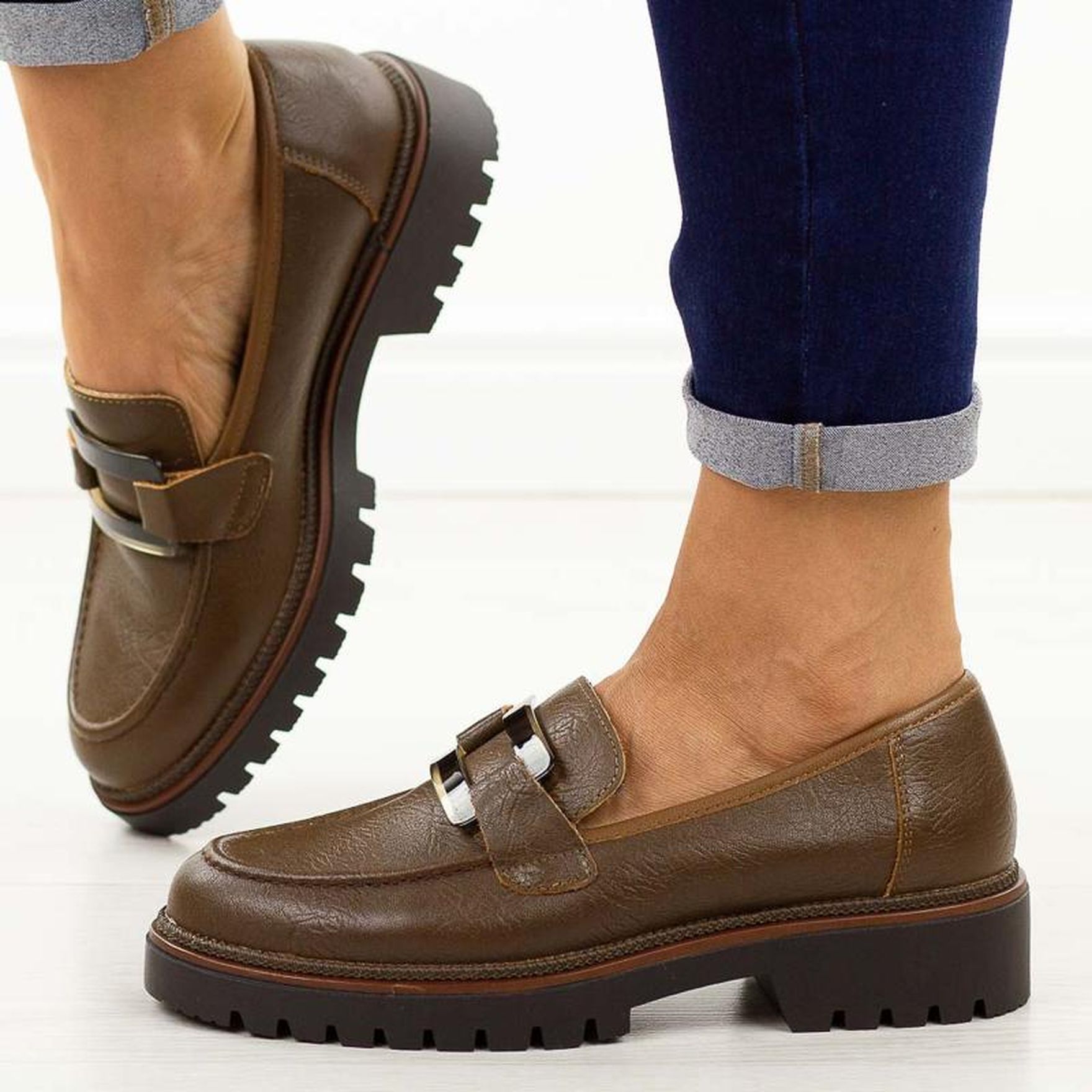 Mokasyny, Brązowy, Sergio leone, Damskie, Skóra - Zima 2026