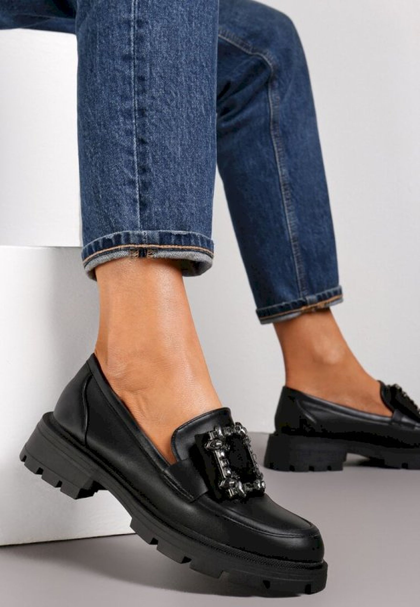 Czarne półbuty damskie Renee - Zima 2025