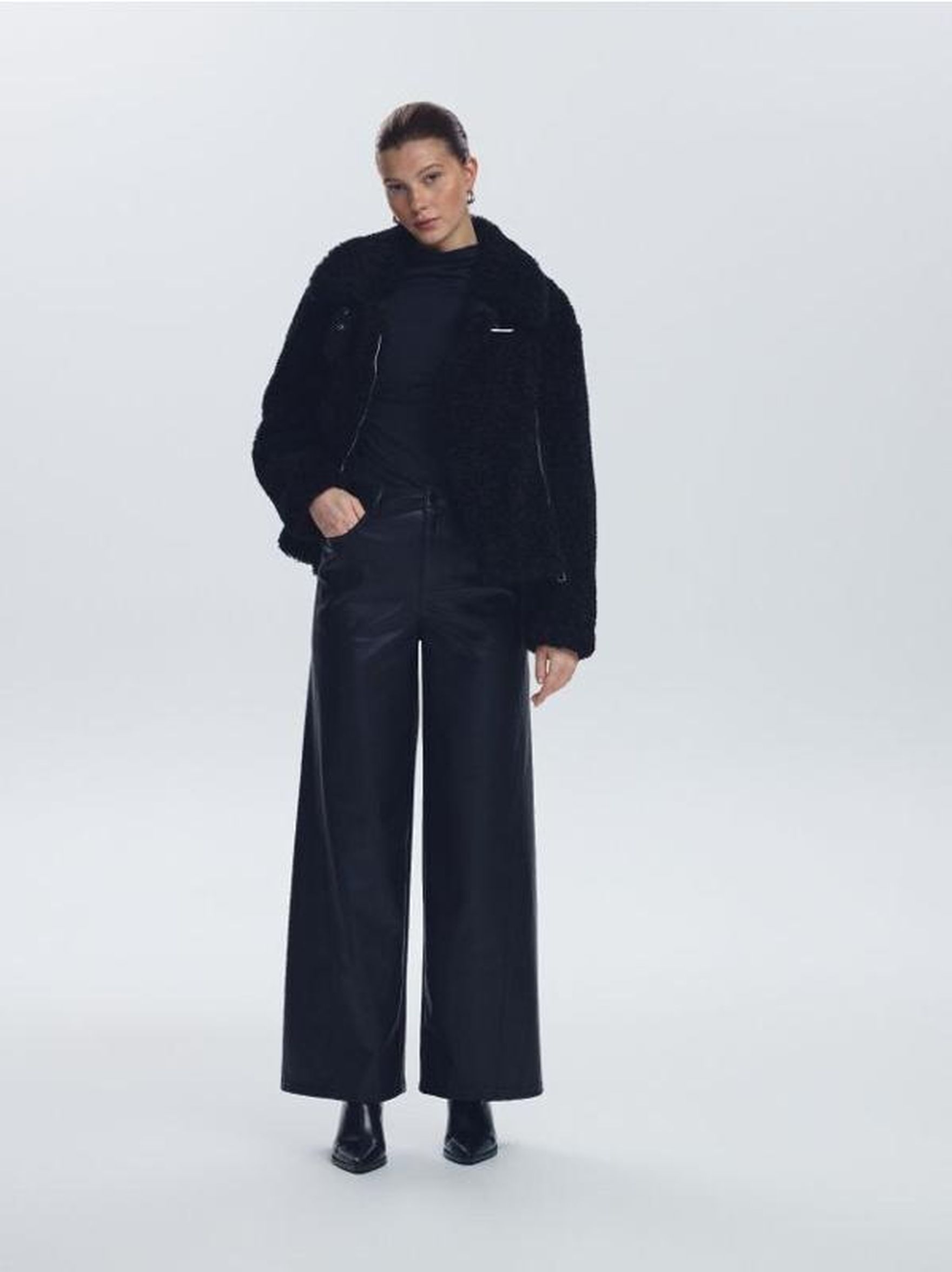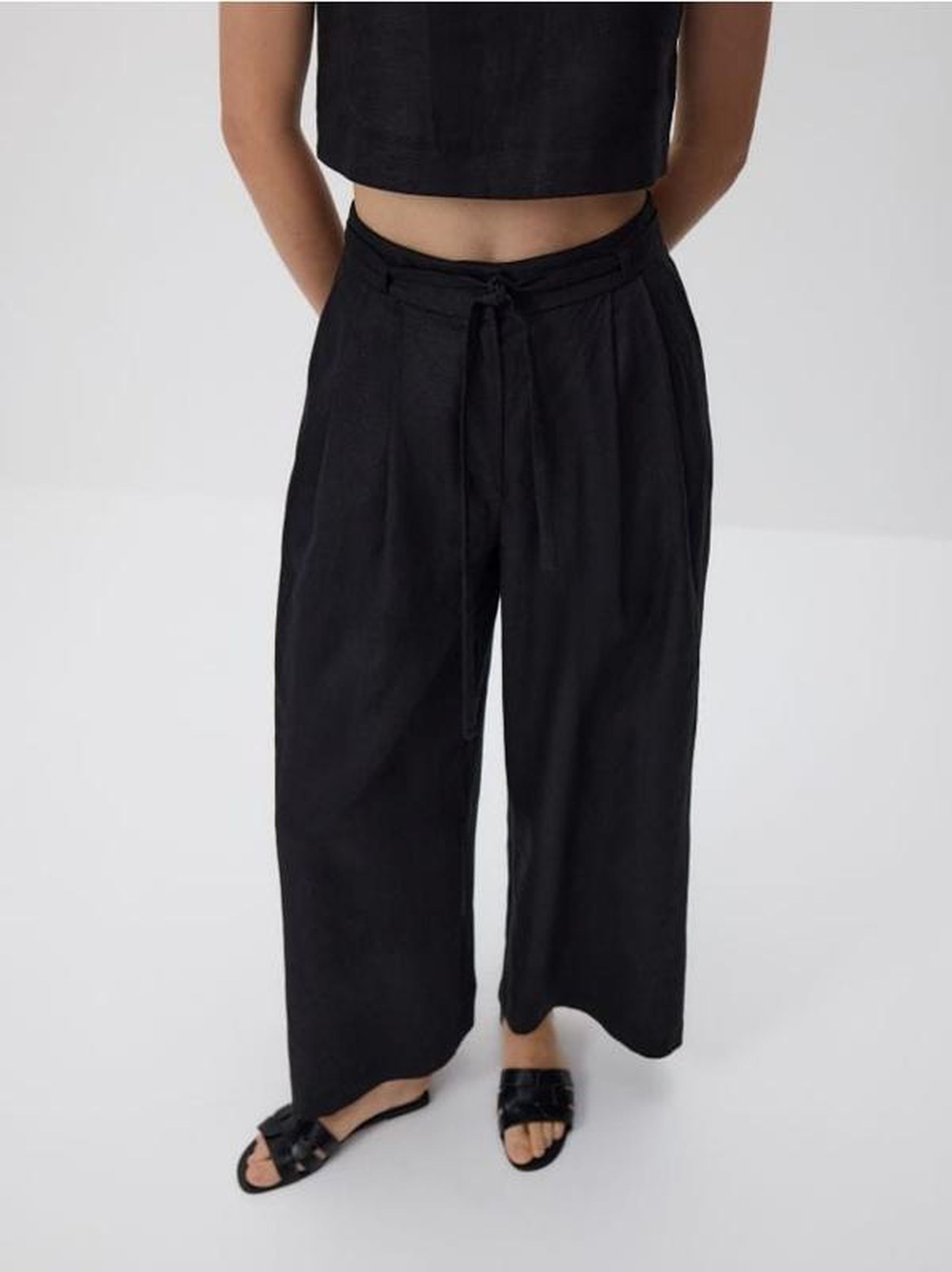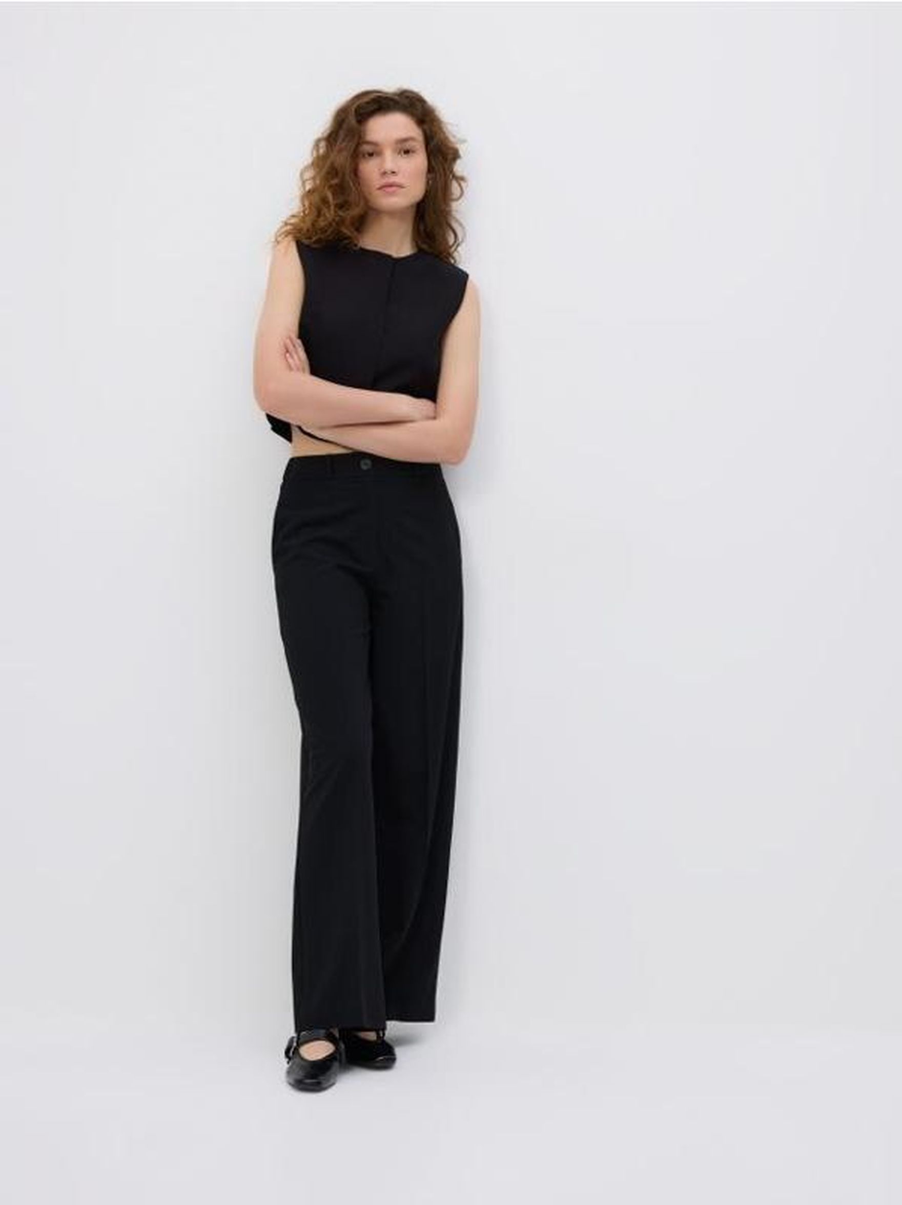 Czarne spodnie z szerokimi nogawkami
