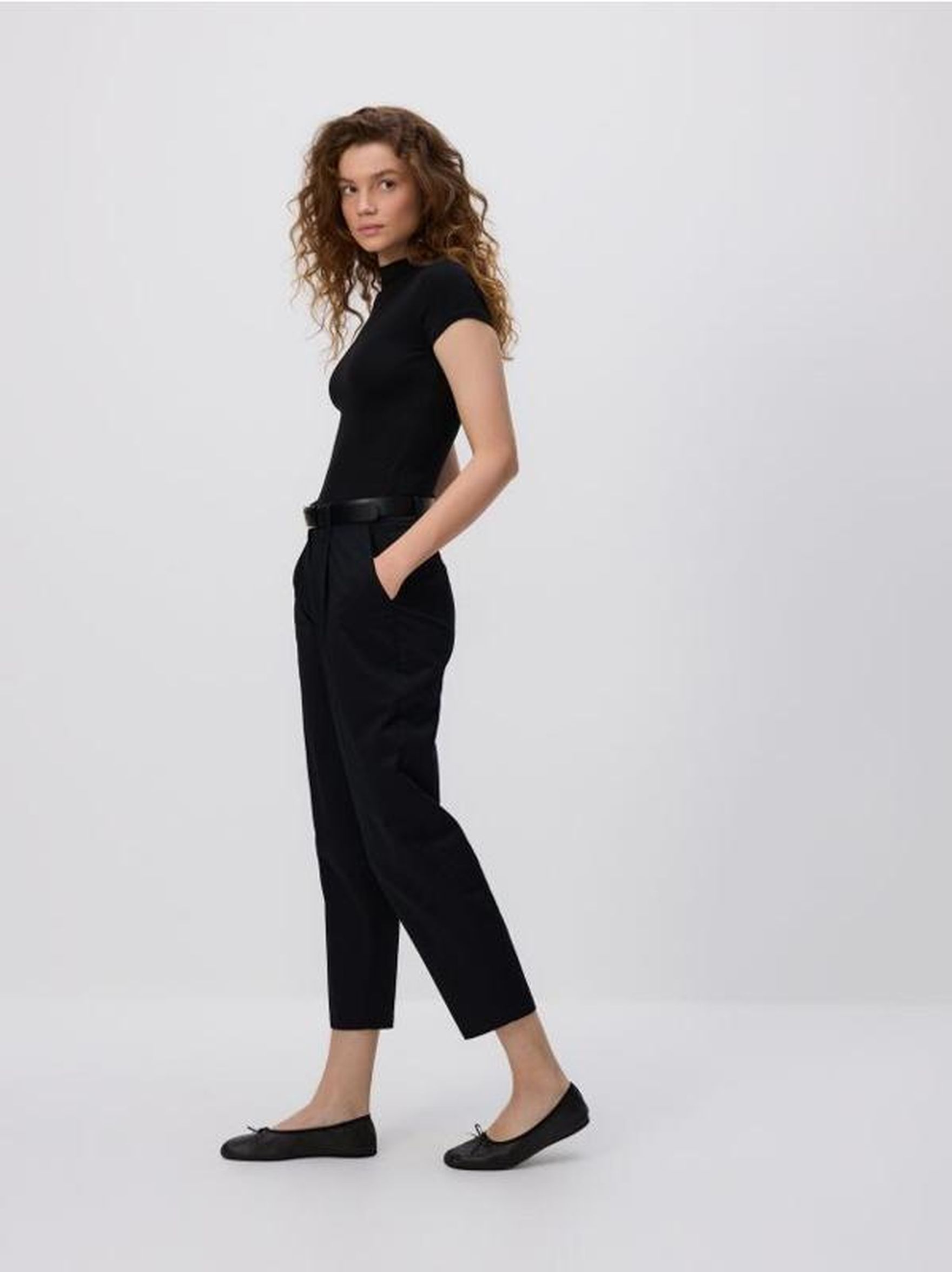 Jednak w każdym przypadku podstawowa zasada pozostaje taka sama – spodnie powinny kończyć się w najwęższym miejscu nogawki. Dla większości osób tym miejscem jest kostka, co oznacza, że ich optymalna długość to 7/8 (tzw. „długość angielska"). Wąskie proste modele o długości 7/8 można łączyć z gładkimi bluzkami (lub z klasycznym dyskretnym nadrukiem), klasycznymi żakietami. Wskazane jest, aby wybierać buty na obcasach. Niskie dziewczyny powinny uważać na tuniki.