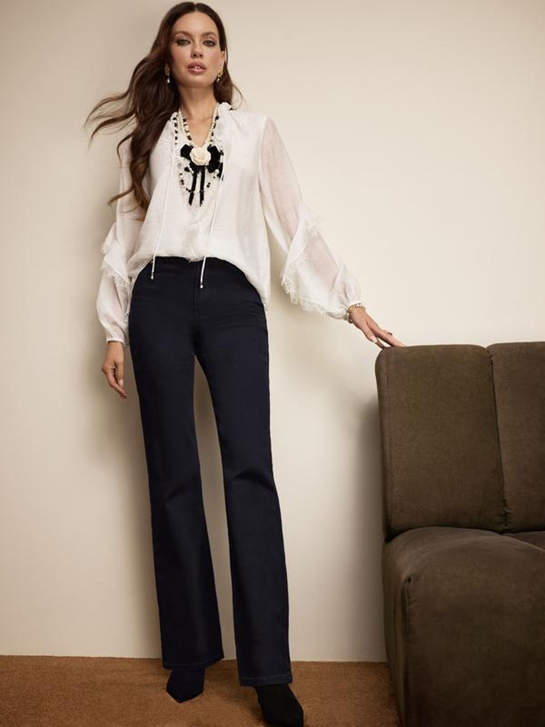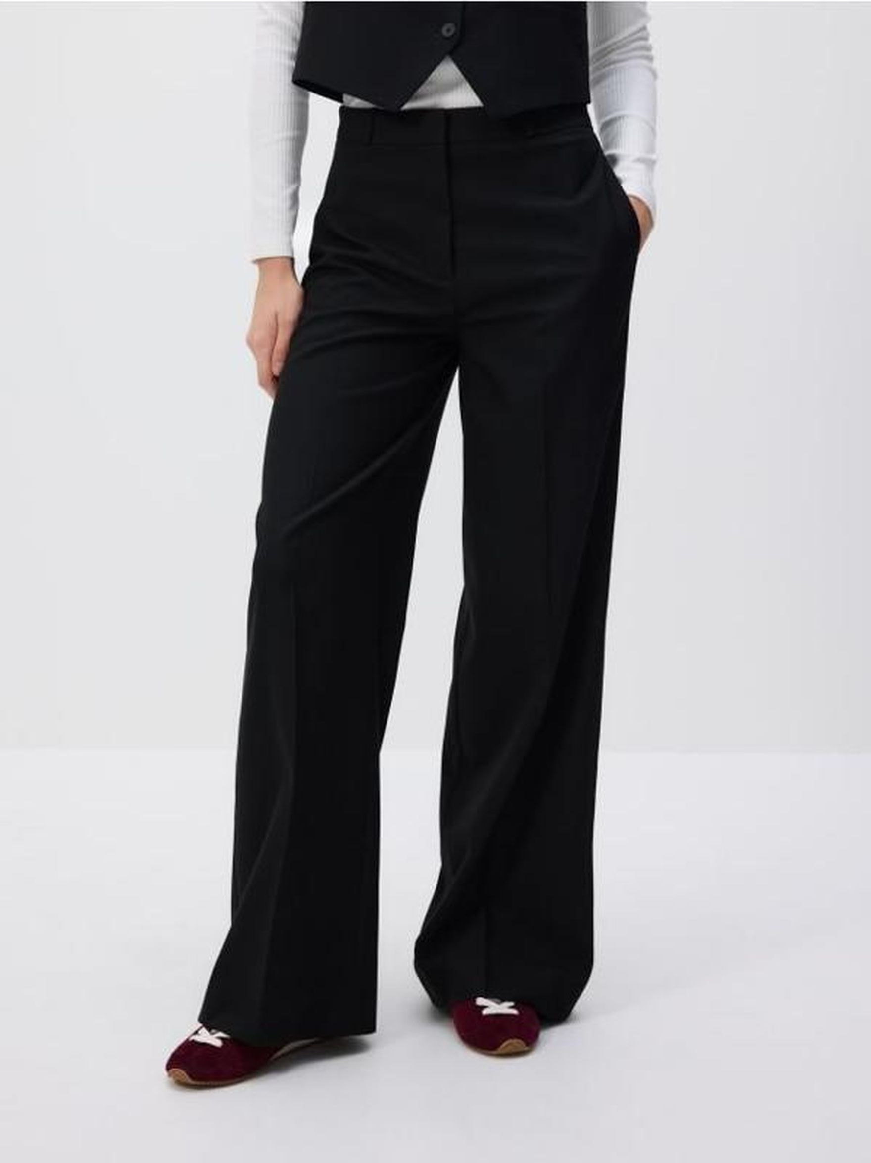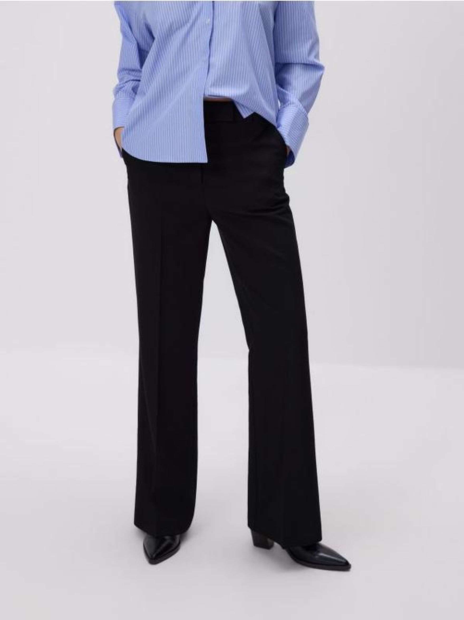 Klasyczne spodnie są proste, a ich długość sięga do połowy obcasa. Istnieją modele spodni z wyprasowaną strzałą. Te spodnie są odpowiednie dla każdej pani, o ile rozmiar i długość są odpowiednie. Należy pamiętać, że klasyczne spodnie powinny być dopasowane do butów. Jeśli obcas jest średni lub wysoki, długość spodni sięgać winna do środka lub nieco powyżej środka obcasa. Jeśli buty są bez obcasa – spodnie po prostu nie powinny „ciągnąć" się po ziemi.