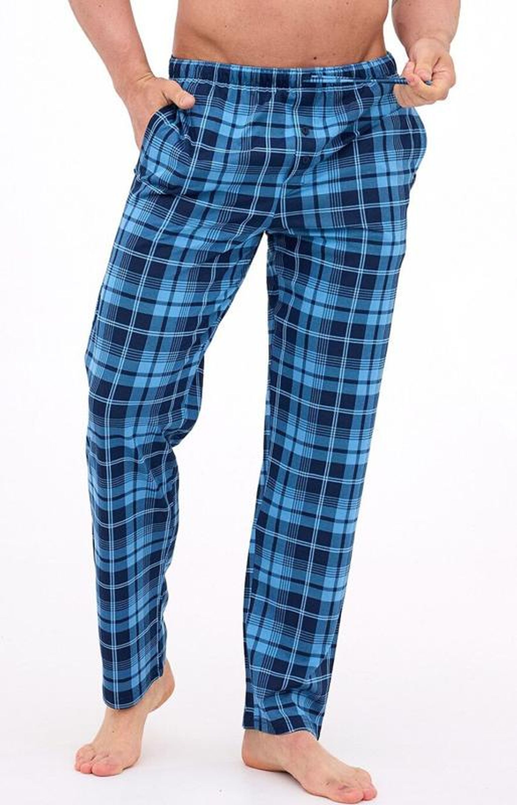 Spodnie w kratę męskie granatowe - na weekend bez okazji