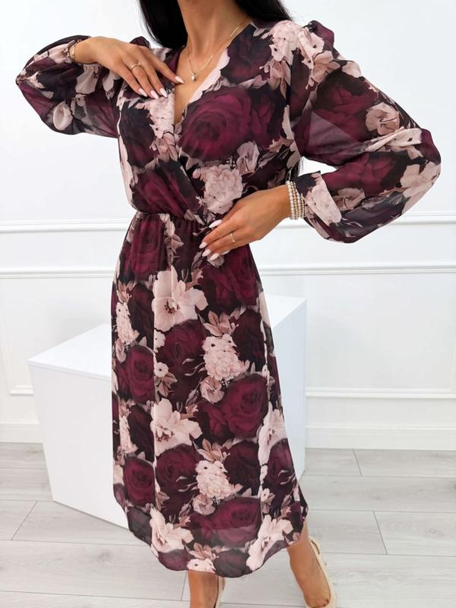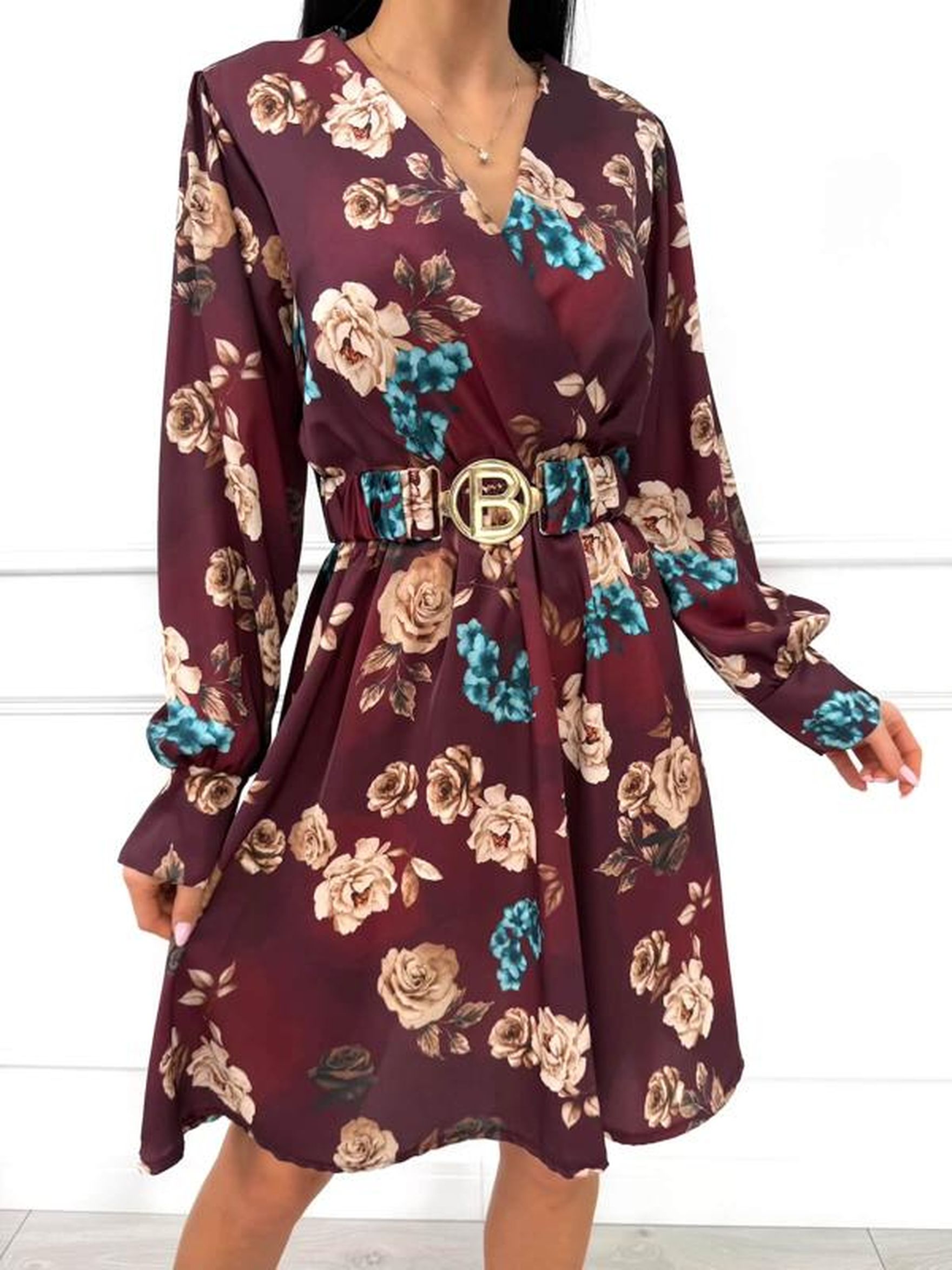 Damskie sukienki z ModnaKiecka - wzór: kwiaty - Zima 2026